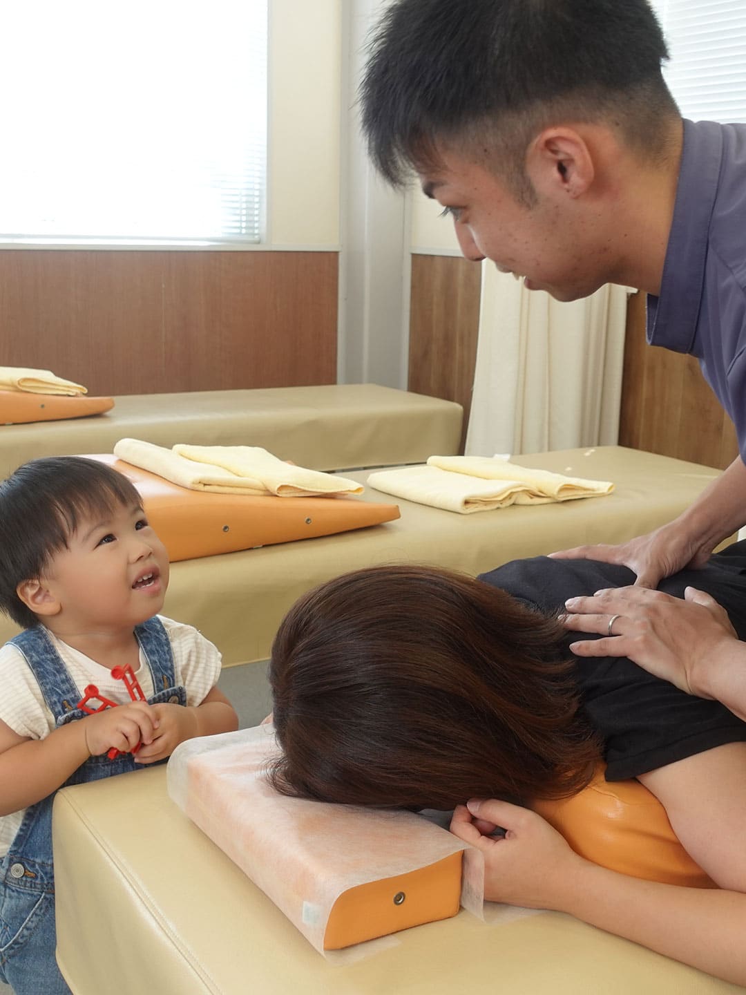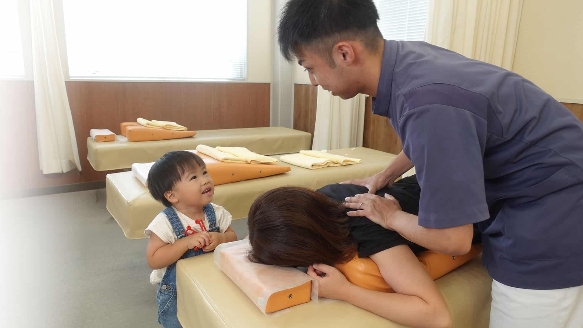 施術中は受付スタッフもサポートしますので安心してお子様といらしてください。